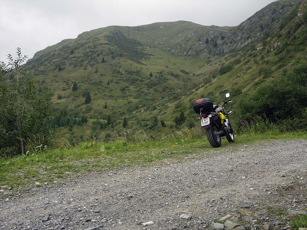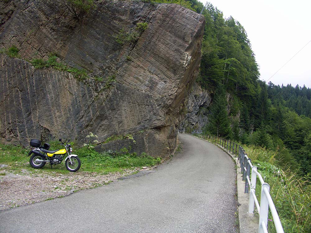 So geht es schön und kurvenreich bis Pontebba. Von Pontebba werde ich eine kleine Verbindungsstraße nach Paularo nehmen, welche parallel zur österr. Grenze verläuft. Über den Cason di Lanza bin ich bereits vor Jahren gefahren. Die Straße war zwar teilweise asphaltiert, aber hatte solche Löcher und war stellenweise so steil, dass ich sie mit der KTM nur stehend bewältigen konnte. Ich bin neugierig, wie das mit der Suzie geht.