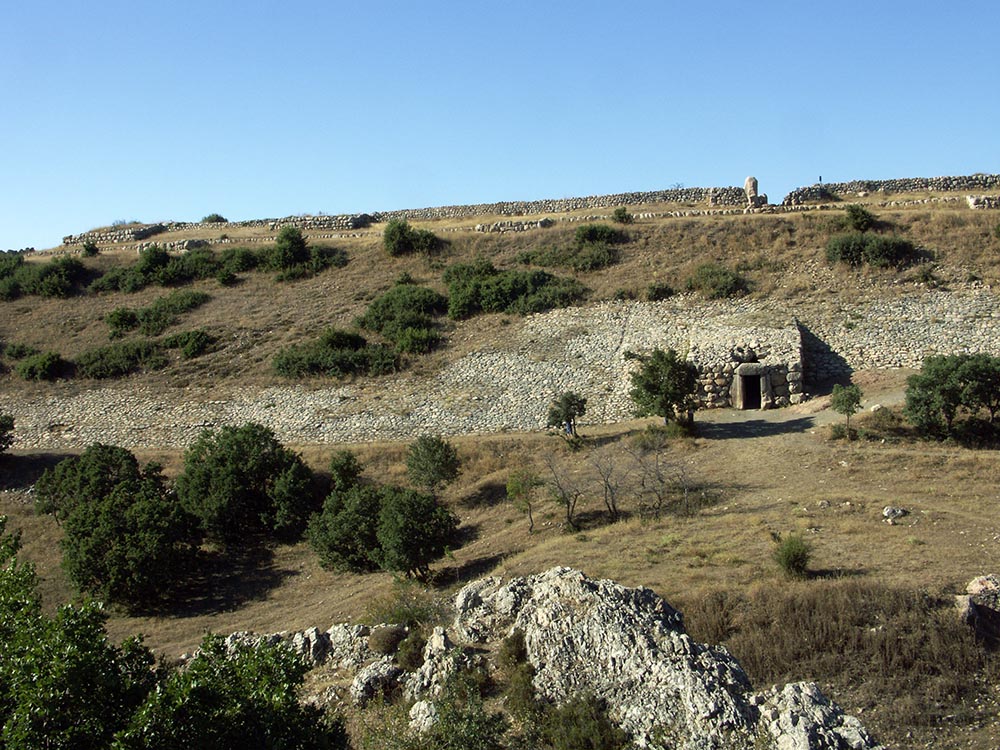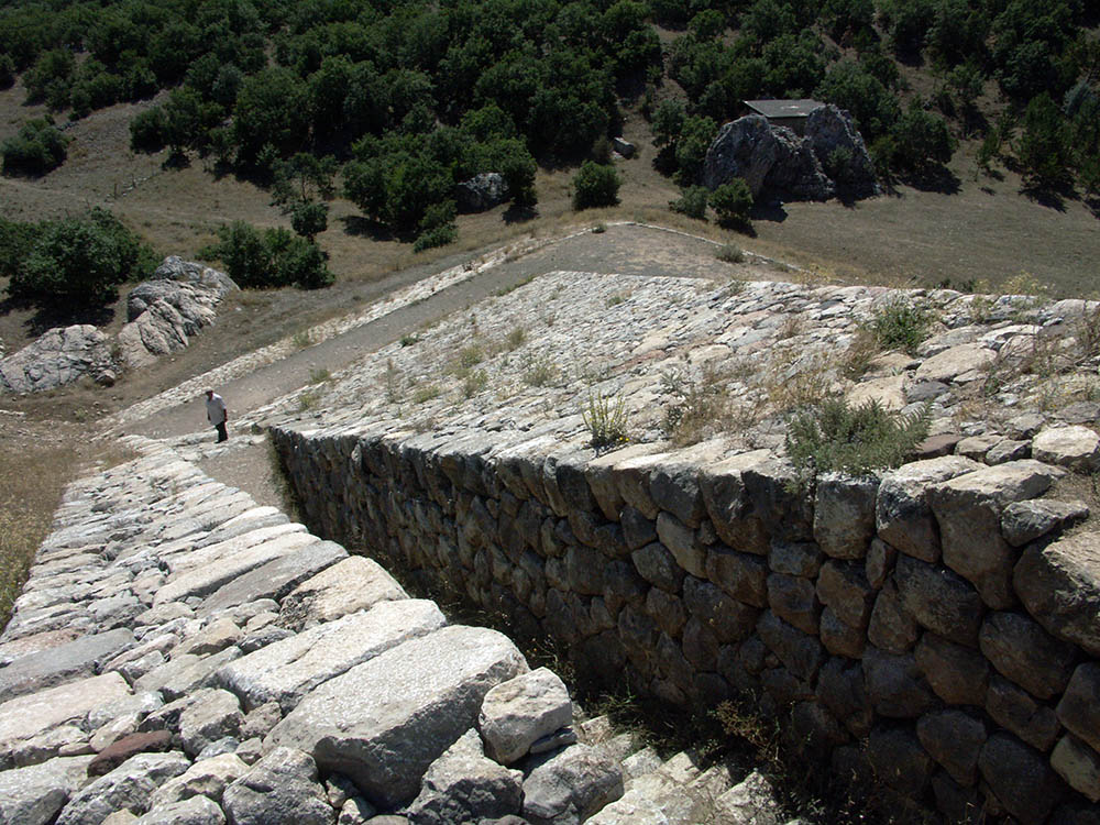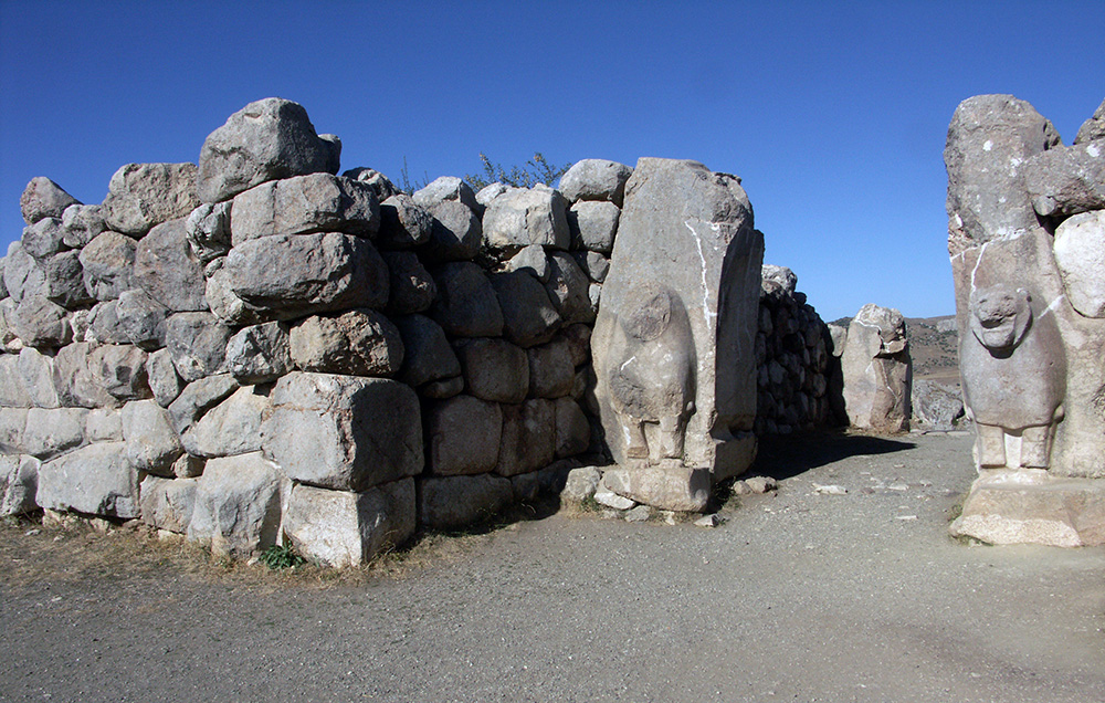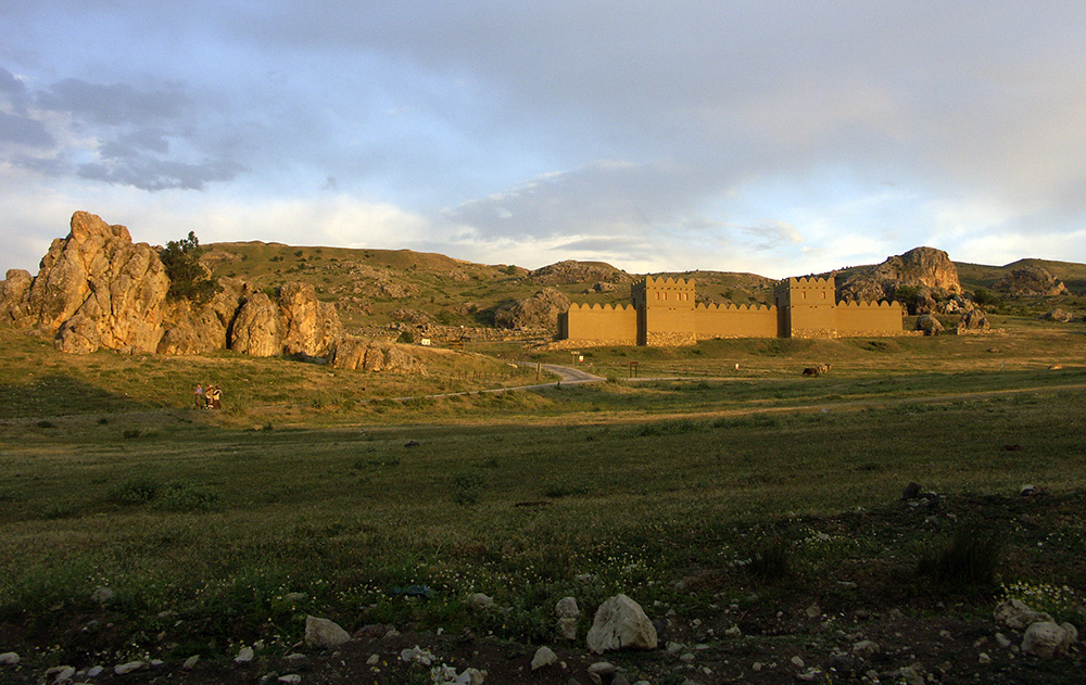 Nächste Station: Hattusa, die Hauptstadt der Hethiter. Bereits in den 90er Jahren hatte ich diese Ausgrabungen besucht und war fasziniert von einem Volk mit mehr als "tausend Göttern", welches bis auf einige Zitate in der Bibel bis vor rund hundert Jahren ganz unbekannt war. Heute weiß man, dass dieses Volk vor 3500 Jahren bereits ausgedehnten Handel und Diplomatie betrieben und Kriege mit den Ägyptern, Babyloniern und Assyrern geführt hat. Einige Jahre nach der Schlacht von Kadesch wurde im Jahre 1259 v.Chr. der älteste bekannte Friedensvertrag zwischen Hattušili III. und Ramses II. (Ägyptisch- Hethitischer Friedensvertrag) geschlossen. Diese schriftlichen Vereinbarungen wurden auf der ägyptischen, wie auch auf der hethitischen Seite gefunden. Ein Auszug davon hängt heute bei der UNO in New York. Vor Ort hat sich auch sehr viel getan. Der wesentliche Teil der ehemaligen Stadt liegt am Hang eines Höhenrückens. Die Befestigungen am Bergkamm sind für ihr Alter gut erhalten. Da tiefe Einschnitte diesen Bergkamm unterbrachen wurden unvorstellbare Erd- und Felsmassen bewegt, um die Verteidigungslinie zu begradigen. Dadurch entstand an manchen Stellen eine gewaltige Festungsböschung. Erst auf dieser befindet sich die eigentliche Stadtmauer, welche durch Stadttore unterbrochen ist. Ungeklärt ist allerdings der Sinn der Tunnel die in unregelmäßigen Abständen durch die Festungsböschung hindurch führen. Die talseitige Befestigung wurde auf einem Teilstück in der traditionellen Bauweise mit ungebrannten Lehmziegeln rekonstruiert und war kurz vor der Fertigstellung.