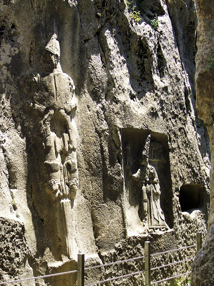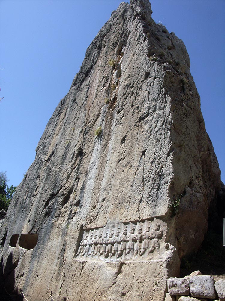 Unweit der Stadt befindet sich Yazilikkaya. Ein Ort mit magischer Ausstrahlung. Ob er Begräbnisstätte von Königen oder ein Platz für Rituale zugunsten der zahlreichen Götter war, ist ungewiß. Durch mehrere schmale Durchlässe gelangt man in schmale Gänge zwischen den Felsen. Diese Felsen sind übersät mit Reliefs von Königen und Gottheiten. Auch als nicht sehr sprituell veranlagter Mensch ist man zutiefst berührt.