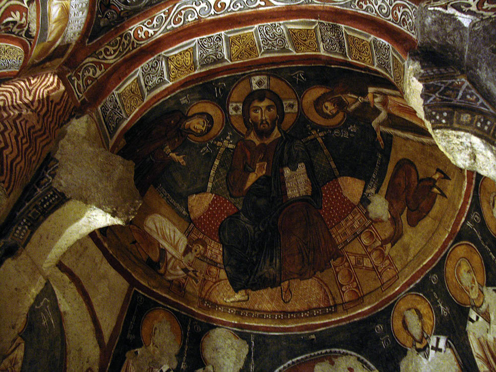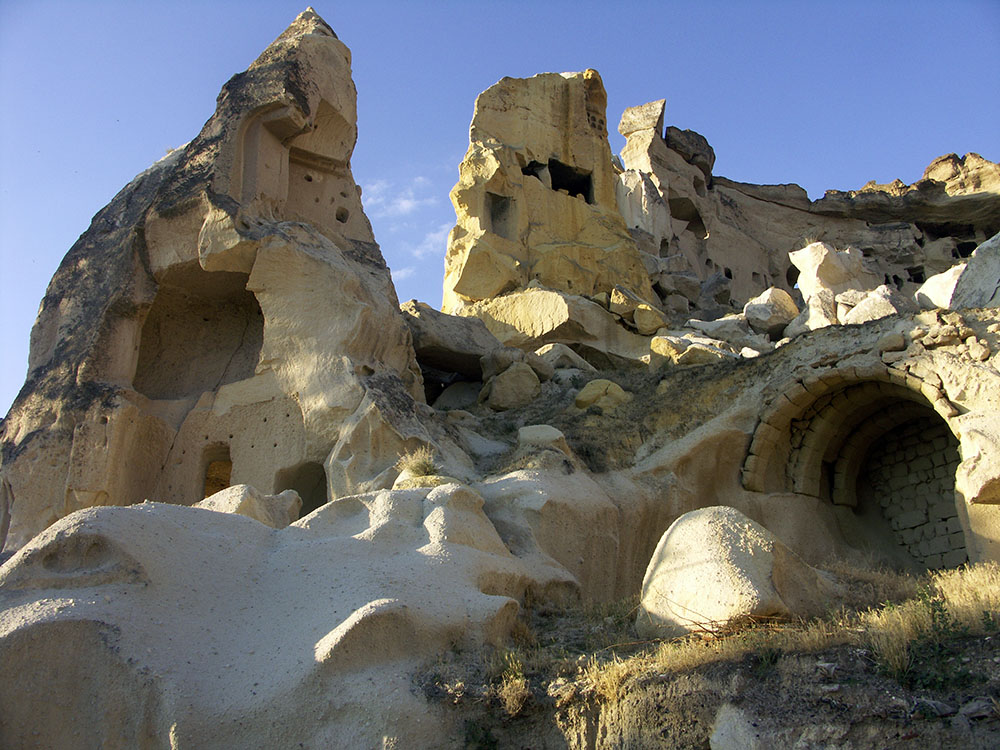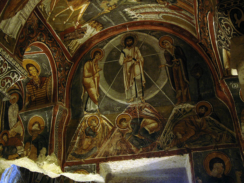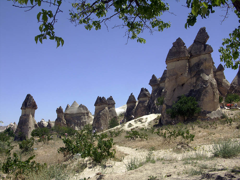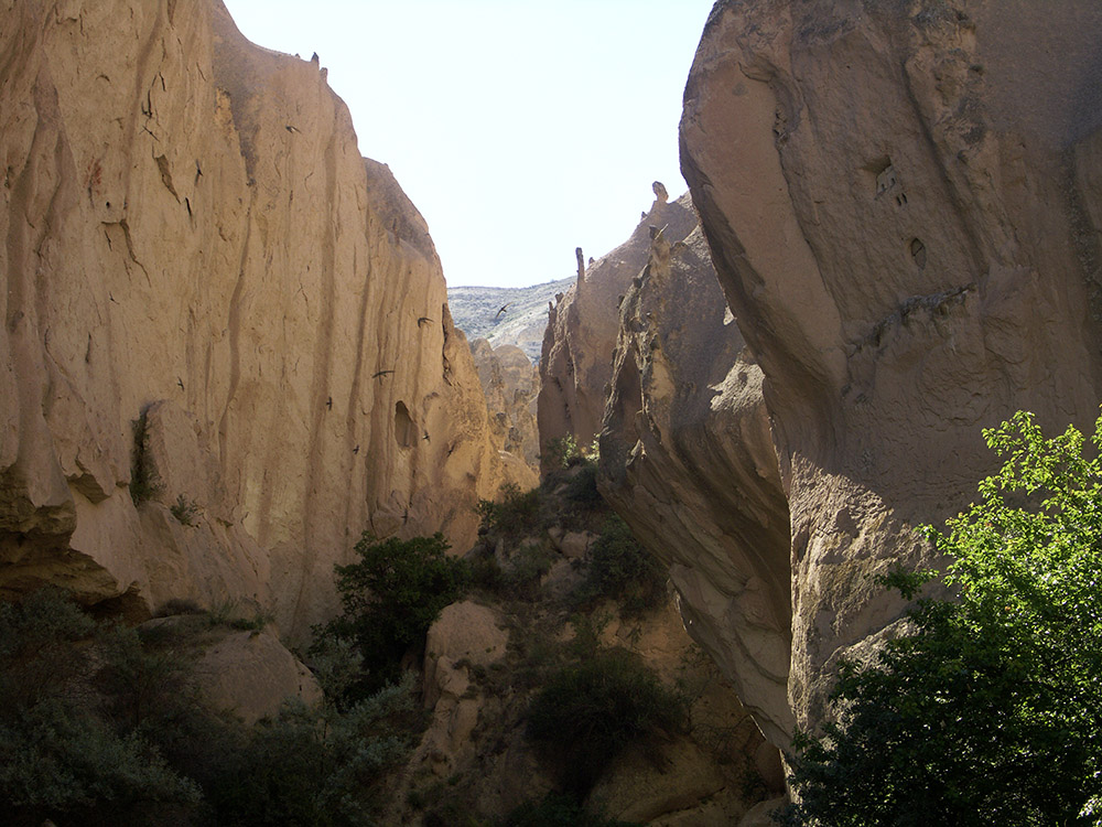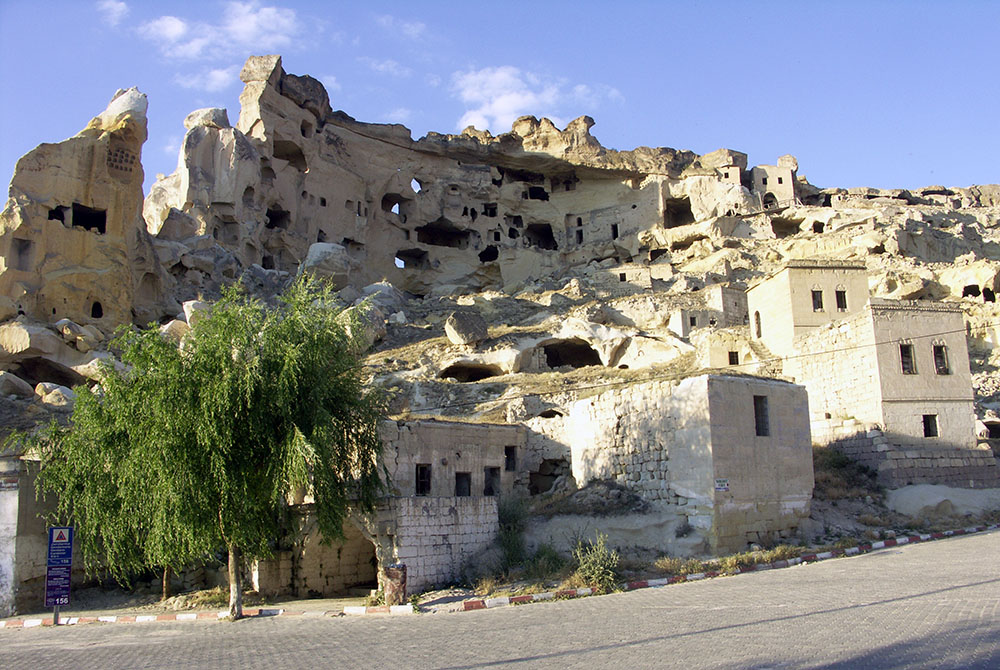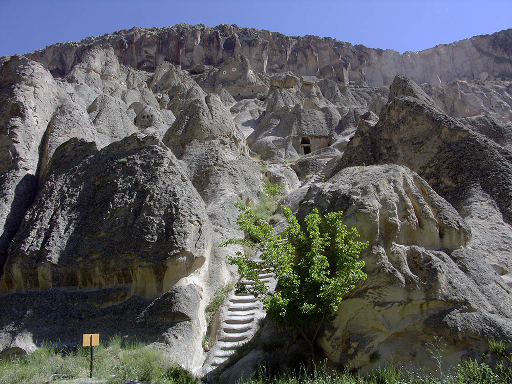 In Göreme gibt es im Freilichtmuseum einen Klosterkomplex zu besichtigen. Die ehemaligen Mönche dürften Jahrhunderte lang Pinsel schwingend verbracht haben, wenn sie nicht gerade wieder eine neue Kathedrale aus dem Gestein gekratzt haben. Sicherlich, ein gewaltiger Schatz, der hier zu besichtigen ist. Aber Preise und Verhalten sind absolut nicht klösterlich. Es herrscht absolutes Fotografierverbot, du musst alles kaufen, ob Bilder, Dias oder DVD´s, zu sehr stolzen Preisen. Selbstverständlich habe ich mich bei dem Eintrittspreis über das Verbot hinweg gesetzt und bin dadurch in Debatten verwickelt worden. Das Argument war, dass die Farben so empfindlich sind, das sie durch das Fotografieren Schaden nehmen. Da ich ohne Blitzlicht auch in der "Dunklen Kirche" fotografierte, konnte mich dieses Argument nicht überzeugen. Meine Foto-Ausbeute ist daher denkbar gering. Ein Erlebnis war es dennoch, trotz des Massenauflaufs.