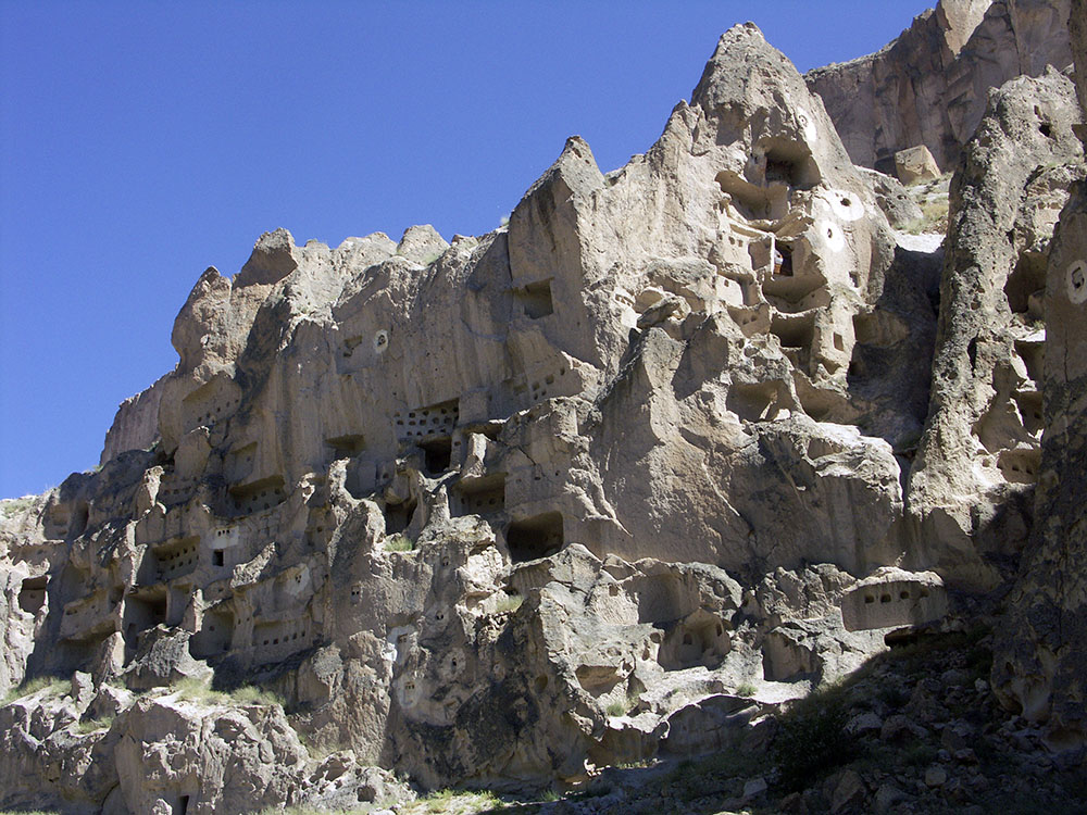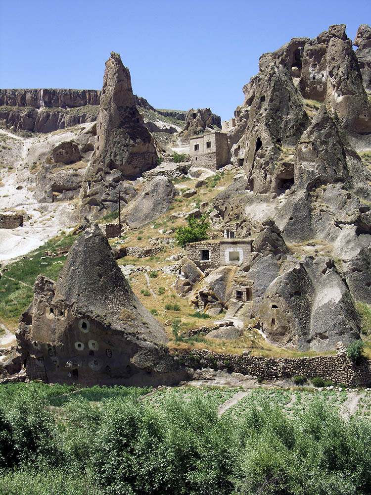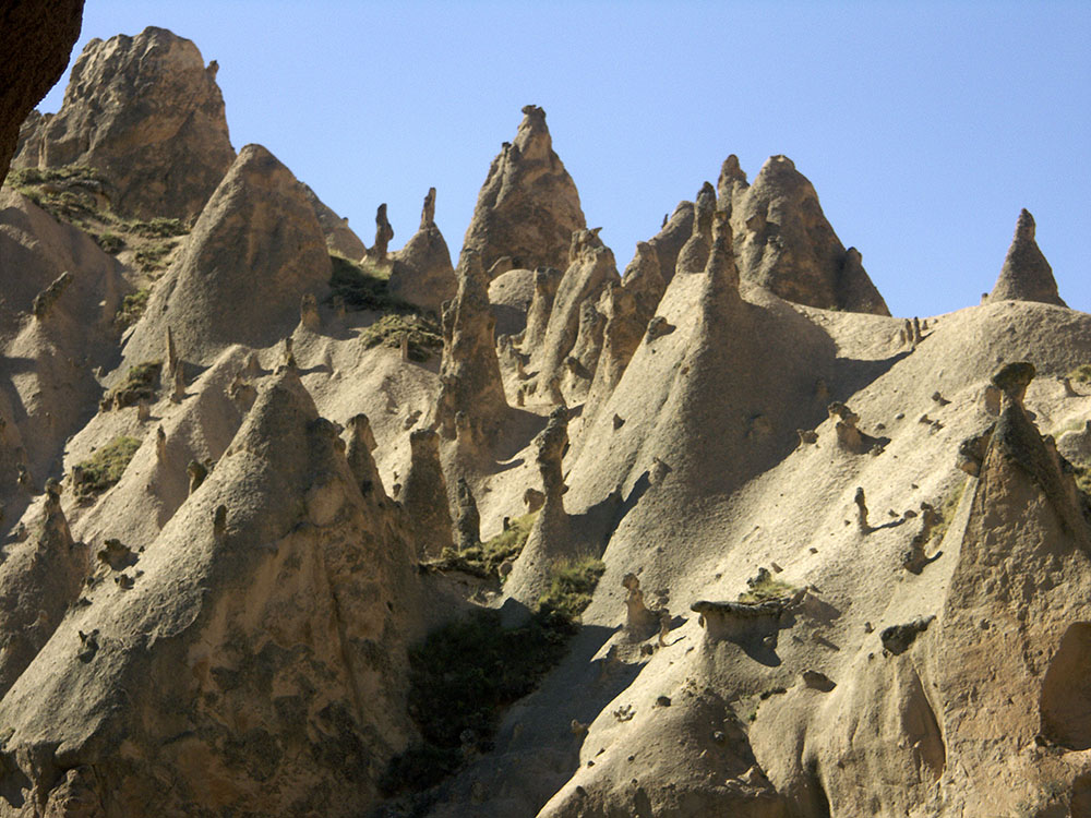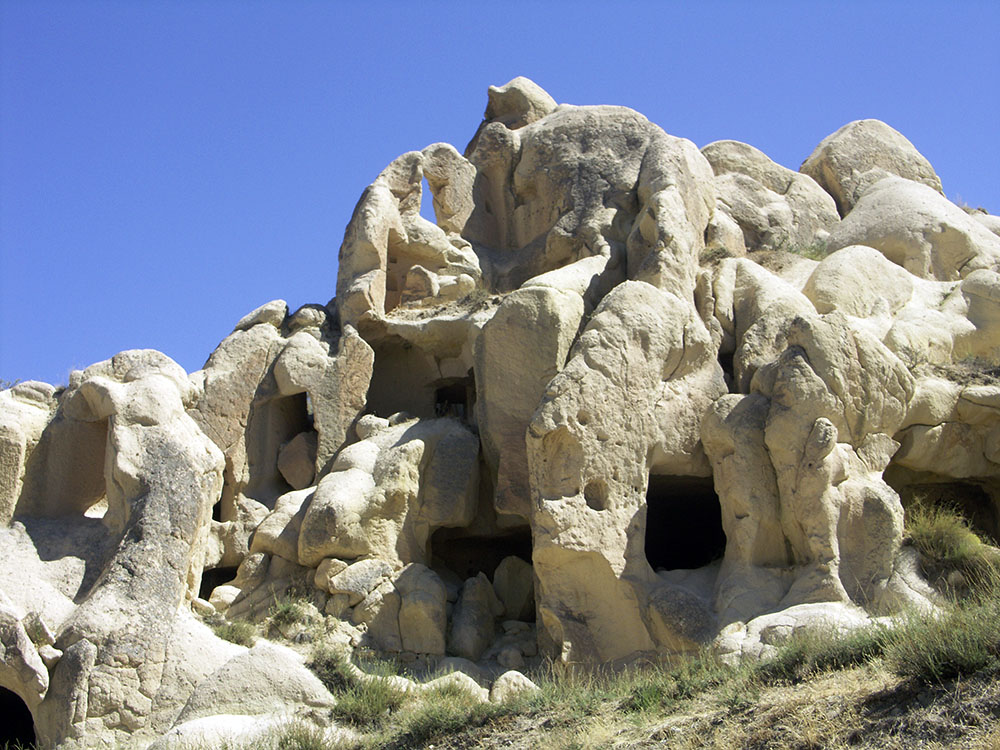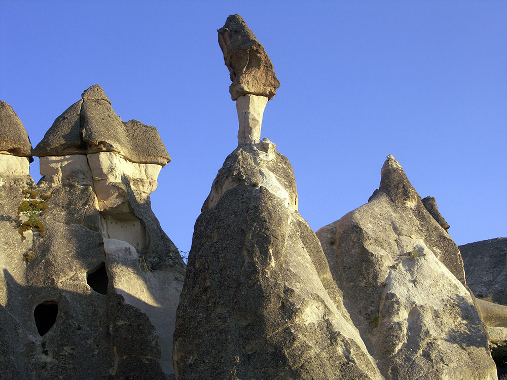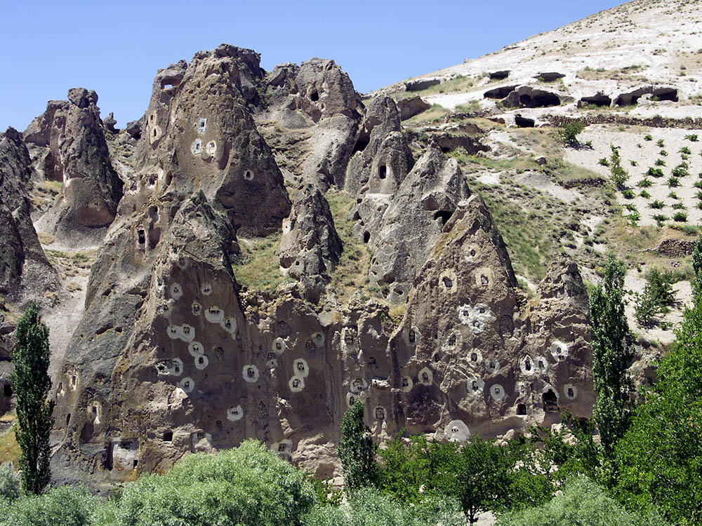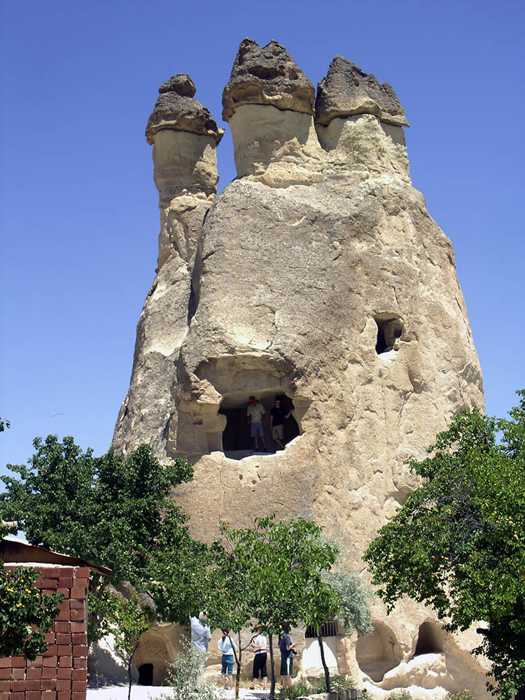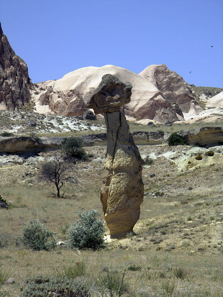 Heute ist dieser Landstrich UNESCO-Weltkulturerbe und total von Touristen überlaufen. Ich bin ja auch einer und an so einem Kuriosum kann man nicht vorbei fahren. Das Land ist sehr fruchtbar und so siedelten trotz der Gefahr, die von dem Vulkan ausgeht, viele Menschen. Das weiche Tuffgestein bot gute Möglichkeiten für Wohnraum, welcher auch gut verteidigt werden konnte. Dies war sehr wichtig, zumal der byzantinische Bilderstreit zu regelrechten Verfolgungen führte. Bis in die 60er Jahre des letzten Jahrhunderts lebten noch einige Leute in diesen Felswohnungen. Die verschieden harten, übereinander liegenden Gesteinsschichten haben mit den Felshöhlen und der natürlichen Erosion auf rund 10.000 Quadratkilometern eine bizarre Landschaft entstehen lassen. Dies ist immerhin eine Fläche, welche rund einem Achtel von Österreich entspricht.