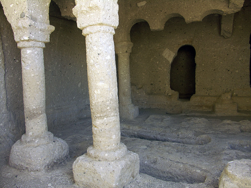 Es entstanden sogar mehrstöckige, unterirdische Städte. Die Bekannteste von ihnen, Derinkuyu habe ich besucht. Diese Stadt ist noch immer nicht ganz erschlossen. Bis jetzt hat man 8 Stockwerke bis in 55m Tiefe freigelegt. Schätzungsweise entspricht dies nur einem Viertel der ursprünglichen Anlage. Außer Wohnräumen gab es Versammlungs- und Lagerräume, mehrere Kirchen und sogar einen Kerker. Auch Stallungen für Haustiere sind vorhanden. Der größte Raum befindet sich in der sieben-tiefsten Etage und misst 25 x 10m bei 3m Höhe. Derinkuyu heißt "Tiefer Brunnen" und daher ist für Wasser auch gesorgt. Über ein ausgeklügeltes Belüftungssystem kann man spüren, wie die Luft zirkuliert. Durch mühlsteinartige Steine, welche von innen vor die Türen gerollt wurden, war man vor Angreifern sicher. Der Bau muss mindestens viele Jahrhunderte gedauert haben. Man vermutet, dass der Baubeginn sogar auf die Hethiter zurück geht.